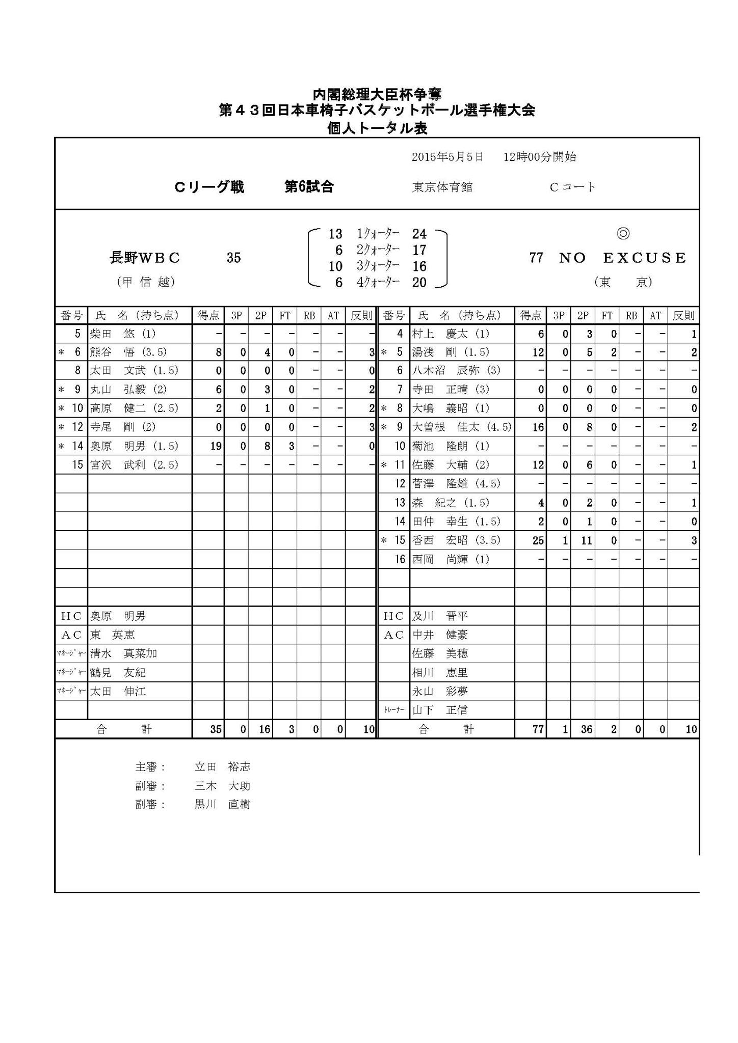 内閣総理大臣杯争奪 第43回日本車椅子バスケットボール選手権大会