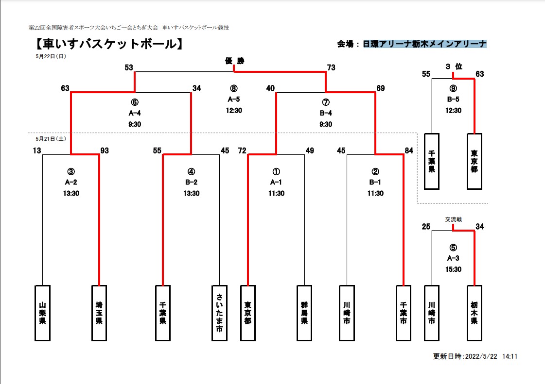 結果は千葉市が優勝し、10月29日(土)~30日(日)に栃木県立県南体育館で開催される第22回全国障害者スポーツ大会 いちご一会とちぎ大会への出場権を獲得しました。